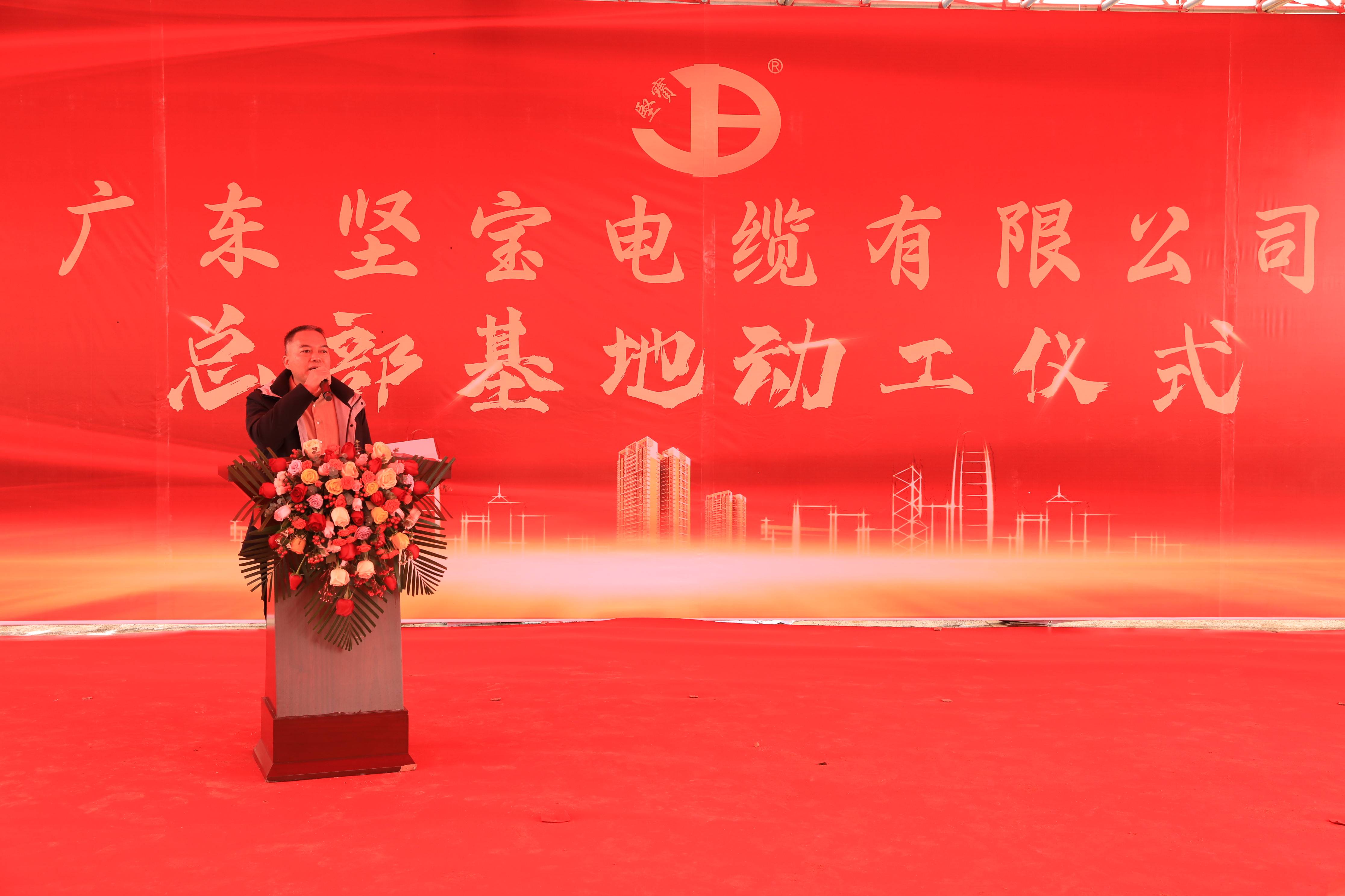 增江街道辦張慶東書(shū)記致辭中衷心希望堅寶電纜在總部基地建設上,堅持高起點(diǎn)規劃、高標準設計、高質(zhì)量建設、高速度推進(jìn),他堅信堅寶電纜憑借得天獨厚的技術(shù)優(yōu)勢,和源源不斷的人才資源,一定會(huì )將堅寶電纜打造為行業(yè)標桿和示范;增江街道辦及有關(guān)部門(mén)將全力支持,創(chuàng )造優(yōu)良的環(huán)境,提供優(yōu)質(zhì)的服務(wù),全力助推公司項目的加速建設。