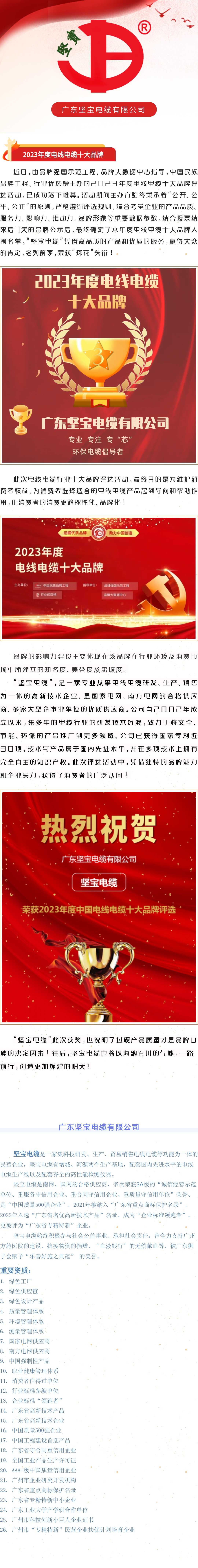 重磅喜訊!熱烈祝賀堅寶電纜榮登"2023年度電線(xiàn)電纜十大品牌"??!